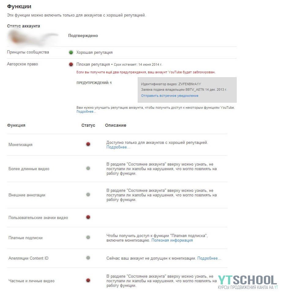 После того как канал получил стайк, у вашего аккаунта отключаются возможности: загрузки видео более 15 минут, отключение монетизации, запрет на использование внешних аннотаций, сервисы поиска поклонников и продвижения вашего контента.